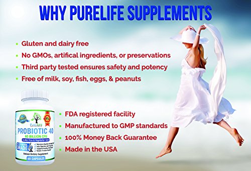 MADE IN THE USA: PureLife Probiotic Supplements are crafted right here in the United States under GMP-certified practices and in an FDA-approved facility. PureLife Probiotics for Women and Men also contain FOS to help with healthy growth of acidophilus and bifidus organisms. 100% MONEY BACK GUARANTEE No Questions Asked!
