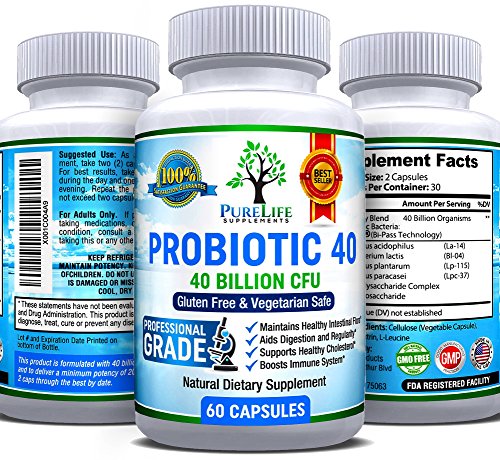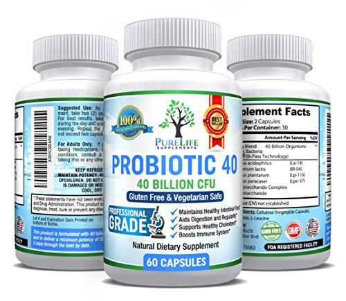 PureLife Probiotic, 40 BILLION CFUs, Probiotic Supplement, Probiotics for Women, Probiotics for Men, Probiotic for Digestive Health, Dairy Free...