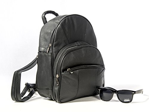 Genuine Leather Backpack Sling Bag Purse - Mid Size Bundle with Stylish Sunglasses
