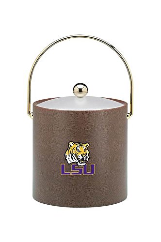 -. Feature : The Louisiana State Fighting Tigers Football Texture Ice Bucket is made in the USA / It has a football texture vinyl, a stainless steel round knob and metal bale handle / The double wall construction will assure the ice will keep throughout the game / The non-removable liner ensures better insulation to make your ice last longer / It is easy to clean with warm water and soap