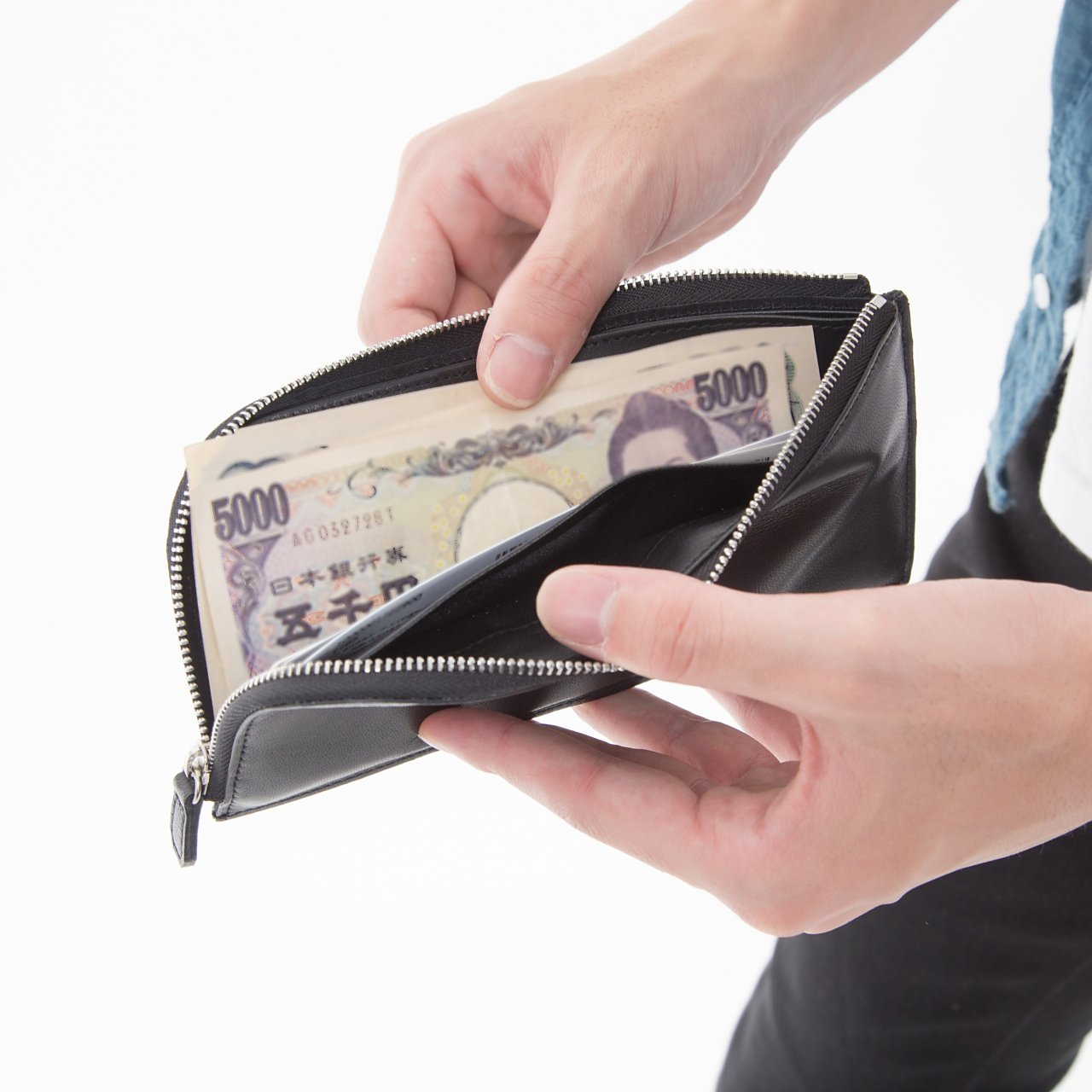 Zipper pocket inside is not attached with zipper, but it is made to be exquisitely calculated so as not to fall from between the coin pocket and the main body fastener inside!