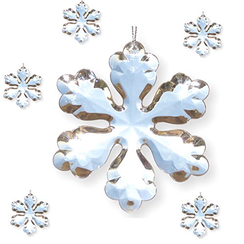 - PREMIUM SNOWFLAKES. Beautiful set of 6 very clear snowflake ornaments. Each one already has the string attached for easy decorating. Great value.