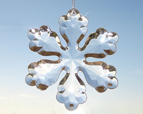- ACRYLIC MATERIAL. These are a perfect clear finish with shimmer and sparkle. They are a 3-D like design and would look great hanging on your Christmas tree or in you kitchen window. Perfect winter snowflake design.