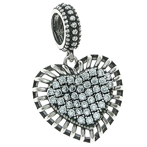 -. Title : Sterling Silver Cubic Zirconia Valentine Love Heart European Style Dangle Bead Charm