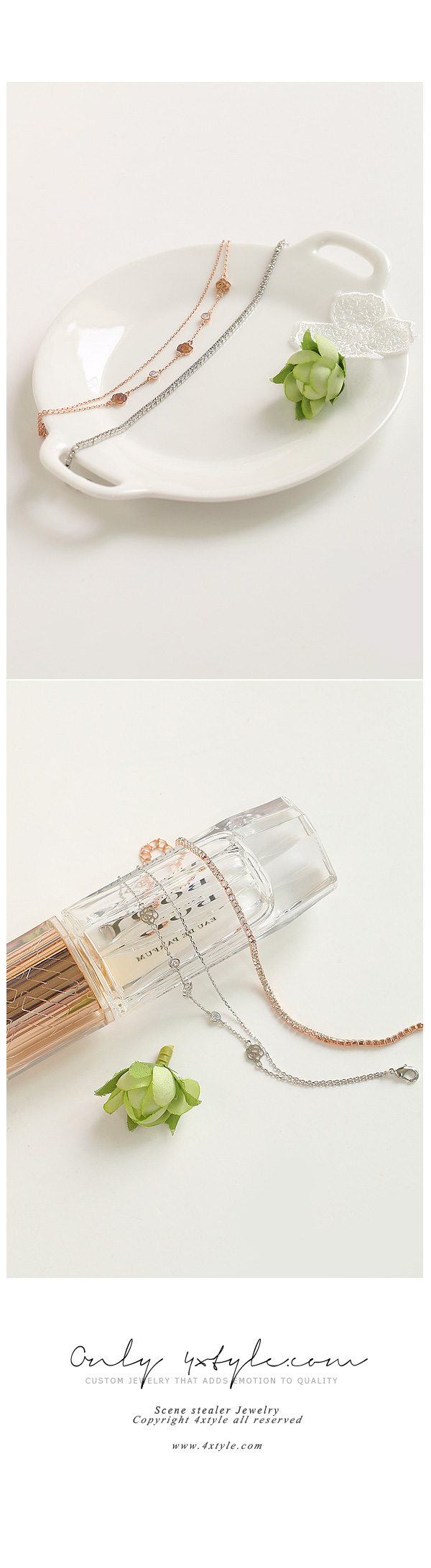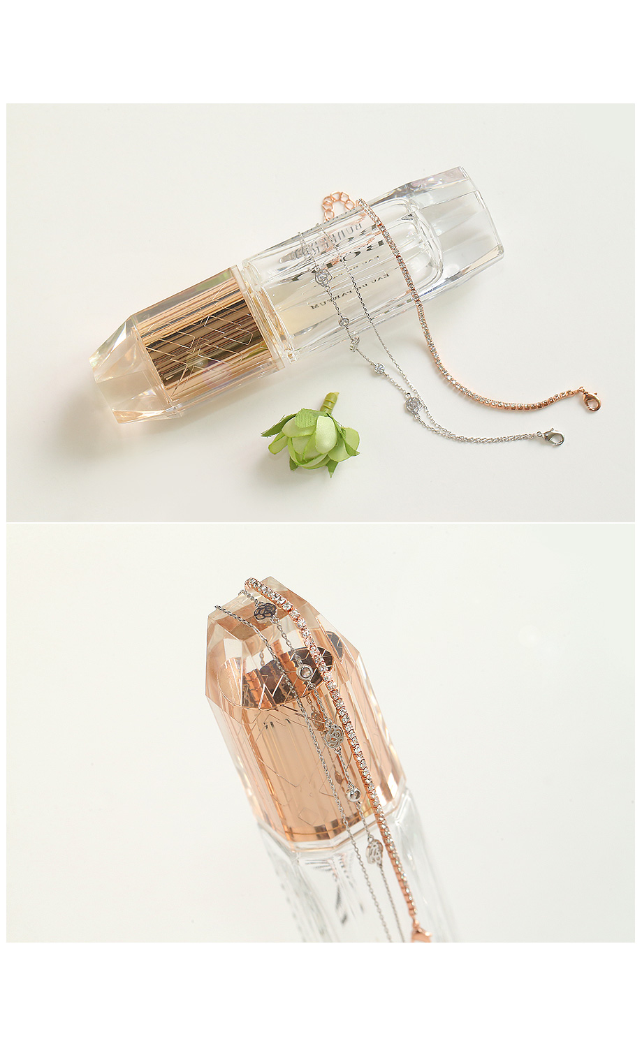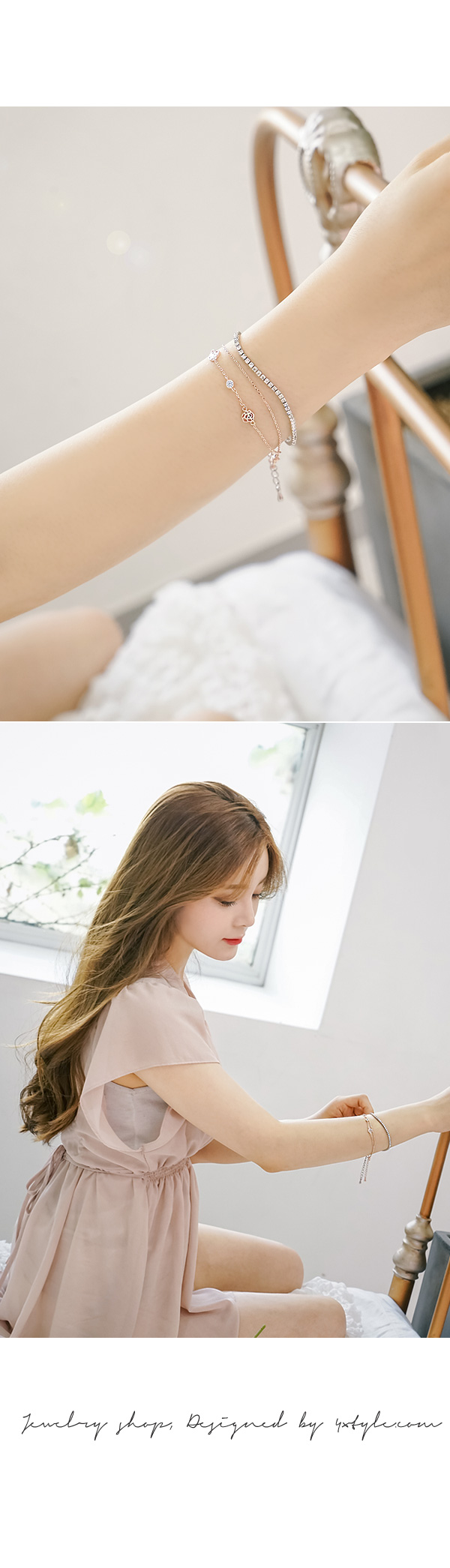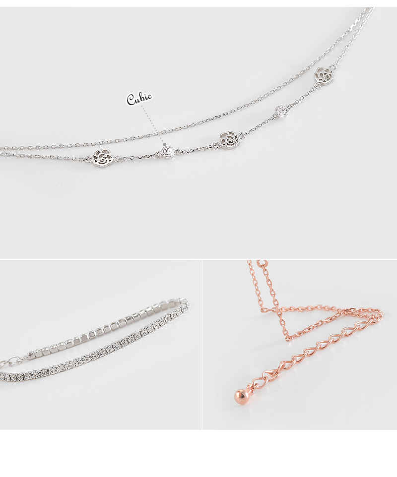 두줄을 레이어드한듯한 장미팔찌와 심플한 큐빅팔찌는