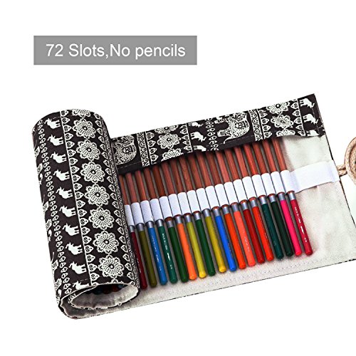 ASOON 72 Colored Canvas Pencil Wrap Pencils Roll Pouch Case Holder