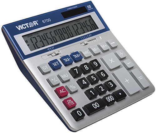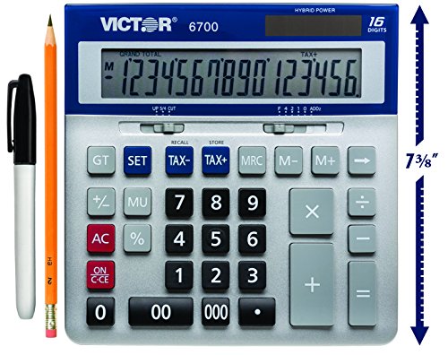 Sixteen-digit extra large desktop calculator with sleek metallic design. Functions include: tax keys, mark up key, grand total key, selectable decimal and rounding switches, percent key, automatic constants, backspace key, three-key independent memory and hybrid power. Power Sources: Battery Solar Display Notation: Basic Number of Display Digits: 16 Display Characters x Display Lines: 16 x 1. Green : N/AFeature