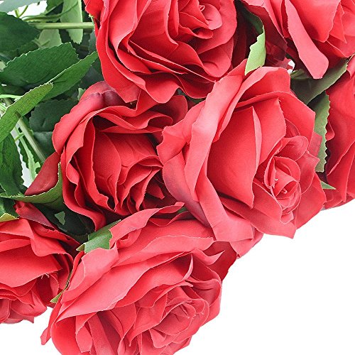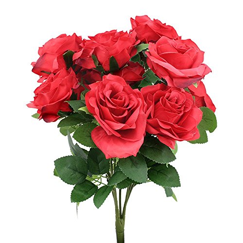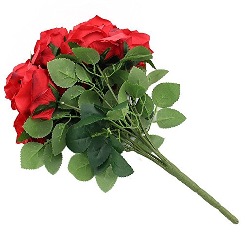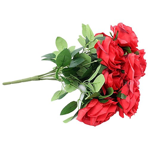 10 Head French Rose Silk Flower Arrangement Artificial Fake Bouquet Wedding Living Room Table Home Garden Decor (Red)