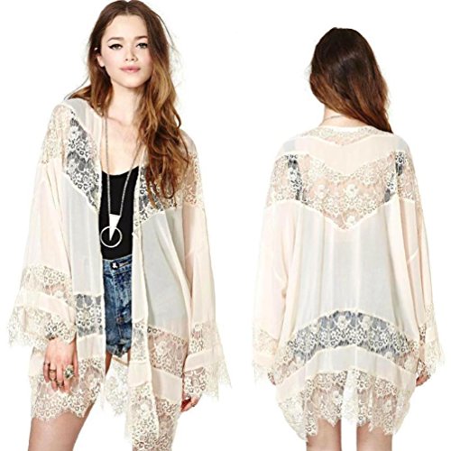 (Bolayu)/Women/Intimate Apparel/DIRECT FROM USA/Bolayu Women Lace Splicing Tops Chiffon Kimono Cardigan Blouse Jacket Coat