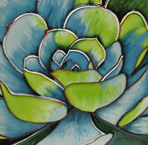 Continental Art Center BD-2341 Art Tile 8x8 Art Tile-Green & Blue Succulent