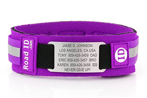- The Road ID Ankle ID includes a comfy neoprene band with a Velcro closure and laser-engraved faceplate.