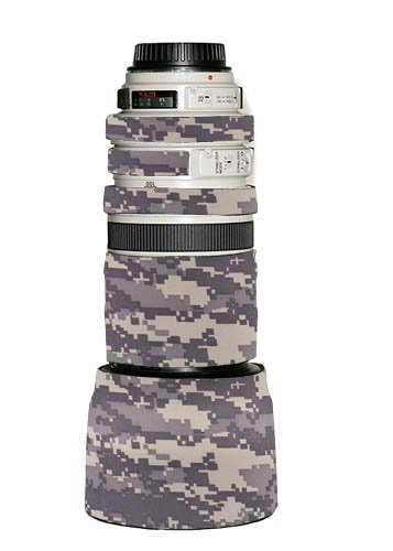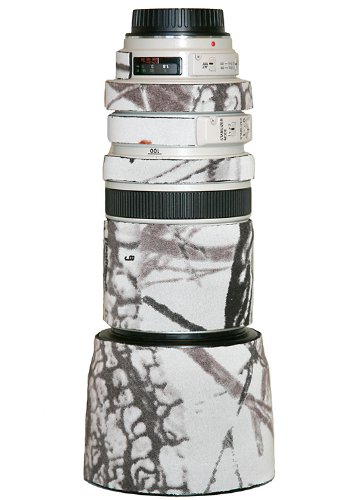 LensCoat Lens Covers... Moving a big white (or black) lens near skittish wildlife is like waving your arms a sure way to flush your subject and ruin what could be a once-in-a-lifetime photo opportunity. LensCoat Lens Covers mask your 100 mm to 400 mm lens, giving you a better chance at getting the shot. LensCoat Lens Covers are manufactured from 100% closed-cell neoprene, offering protection from bumps, jars and nicks, with a camouflage-pattern fabric cover. LensCoat Lens Covers also provide a thermal barrier, protecting your hands from cold lenses in lower temperatures. They are easy to install and remove, leaving no residue on the lens. And LensCoat lens covers are waterproof, providing protection in harsh conditions. Other features include a clear, flexible UV-PVC window over the AF/IS/VR controls and the distance-scale window. The LensCoat also features custom holes that reveal the red-dot for easy alignment to the camera body without removing the cover. The LensCoatTM 100-400 has small hole on the last segment lines up with the red dot indictor, making it easy to quickly line up your lens with camera mount evenwith the cover installed. Please note that the The LensCoatTM Canon 100-400 IS cannot cover the fixed portion of the lens barrel due to the manner in which the lens barrel extends/retracts leaving approximately 3 inches exposed when the lens is fully extended.Feature