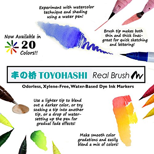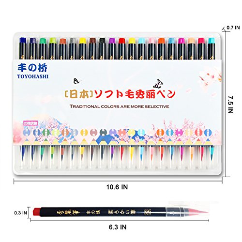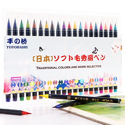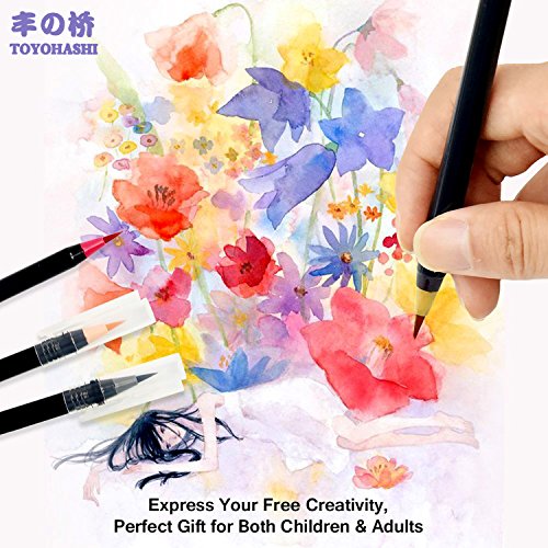 Watercolor Soft Brush Pen Set - Japanese Flexible Tip Painting Brush, Water Coloring Marker Pens for Adult and Kids Coloring Books, Drawing, Calligraphy, Writing and more - Non-Toxic - 20 Color