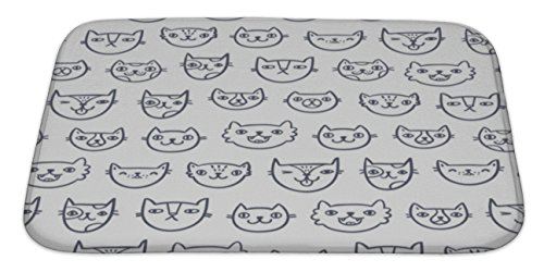 Gear New No Slip Microfiber Memory Foam Cat Faces Pattern Bath Rug Mat, 34" X 21"