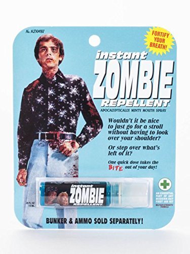 Studio : Blue Q Publisher : Blue Q Binding : Misc. Product Description Jesus Had A Sister Productions does it again with this totally relevant, entirely useful, and fully functional breath spray that keeps Zombies away. An essential part of your Zombie Preparedness Kit. Which you have, tucked under the spare tire, in the back of your car. Right? .25 fl. oz./7.5 ml 0