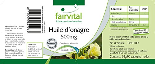 -. Title : Huile d'onagre 500 mg, riche en GLA (acide gamma-linolénique) avec vitamine E naturelle - 90 capsules molles