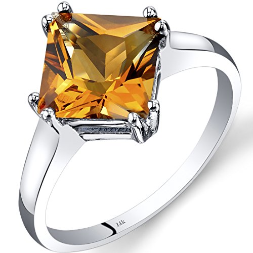 -. Title : 14 Kホワイトゴールドシトリンソリティアリング2.25カラットプリンセスカット
