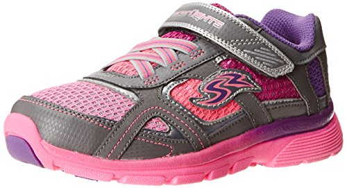Fancy light-up heel action with every step. Mix up your steps to see the lights change from a chase sequence to a strobe design, tracked by a step counter within the shoe. Hook-and-loop closure with laces for easy on and off. Breathable mesh lining and cushioned footbed. Flexible and lightweight outsole. Imported.Feature