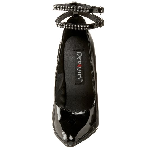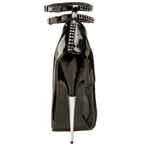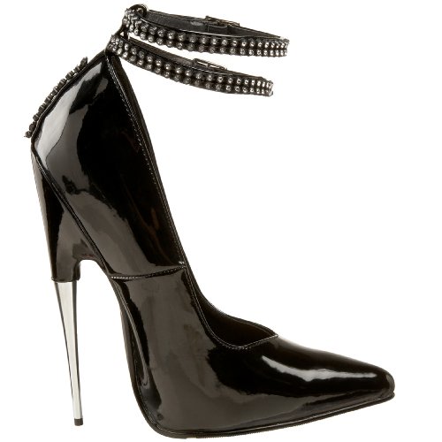 Studio : Pleaser Publisher : Pleaser Binding : Apparel Product Description Devilish looking Black Patent Finish pointed toe pump design shoes with a 6 inch high chrome spiked Spike heel and rhinestone encrusted buckle ankle strap. A Devious classic and best seller. Heel Height: Approx. 6' Tall. 0