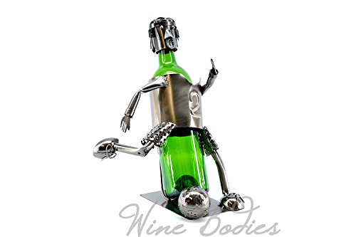 WINE BODIES ZB140 Soccer Player Metal Wine Bottle Holder, Charcoal