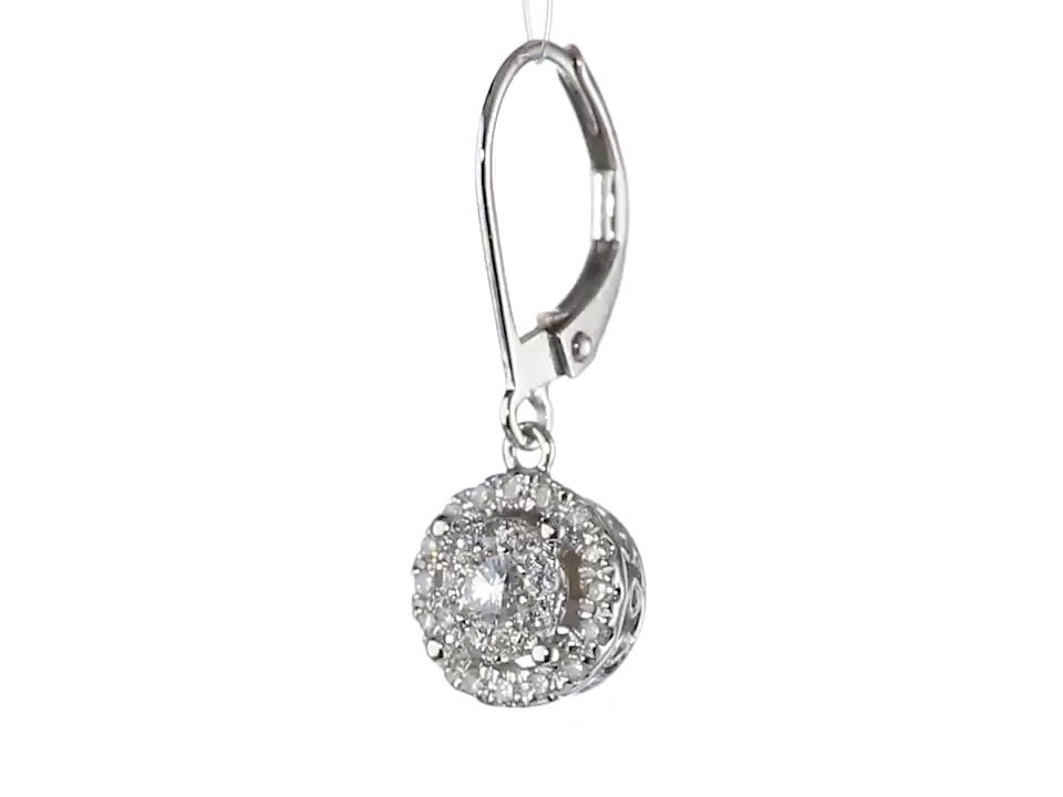 White gold earrings featuring circular drops covered in white-diamond clusters