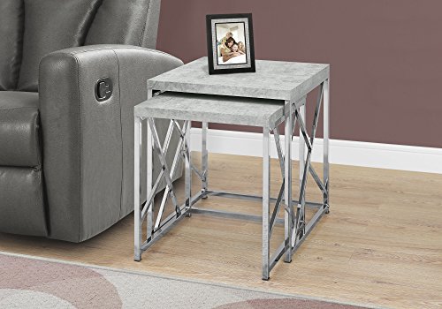 -. Title : Monarch Specialties 2 Piece Nesting Table Set - Gray/Chrome