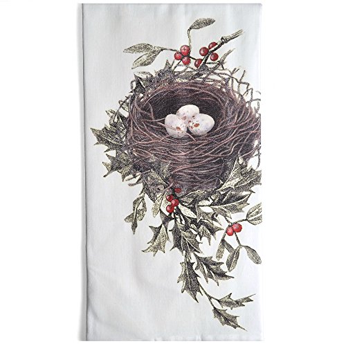 Montgomery Street Bird's Nest and Holly Cotton Flour Sack Dish Towel