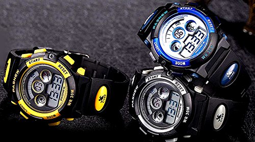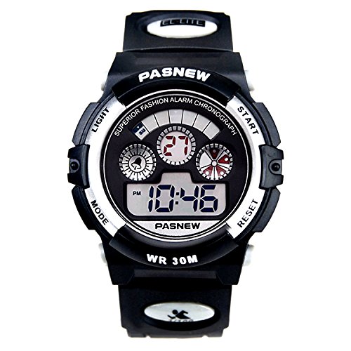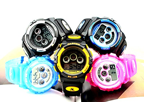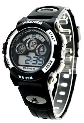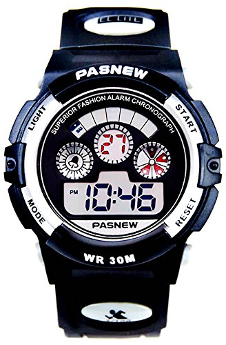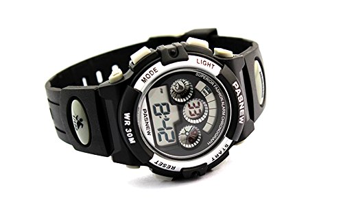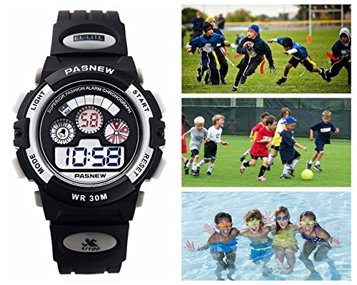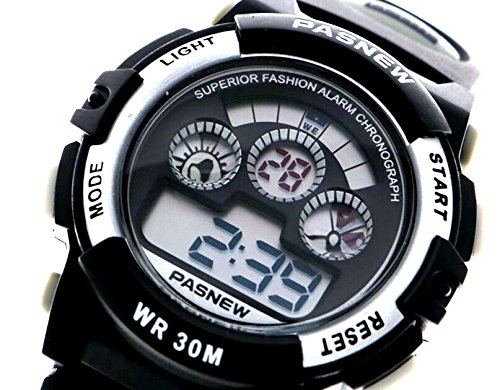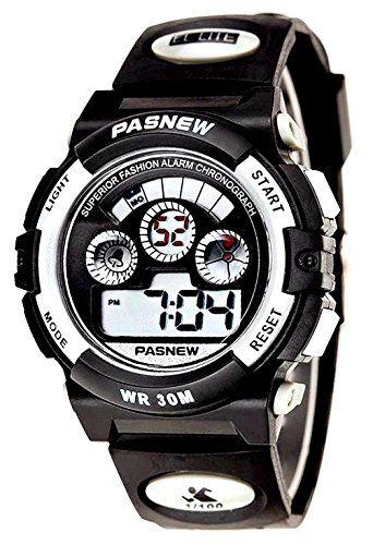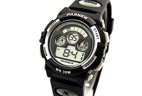 Studio : New Brand Mall Publisher : New Brand Mall Binding : Watch Product Description Gender: Boys girls childrens or students Style: Sport or casual Movement: Quartz Water-proof: 3ATM Case material: ABS Band Material: PU Clasp type: buckle Case diameter: 38mm Thickness of case: 14mm Color: as picture Suitable for wrist(perimeter): 130 to 200mm(Suitable for children 5-12 years old) Features: 100% brand new and high quality sport watch Back light function Stop watch function(1/100 seconds) Alarm clock function 12H/24H time format Calendar / Week Luminous effect Long battery life 3ATM water resistant (not for diving and do not press button under water.)