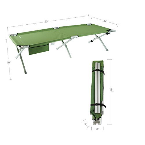 OnwaySports Cot Lightweight Foldable Portable Bed for Camping Carrying Bag Included, Amy Green