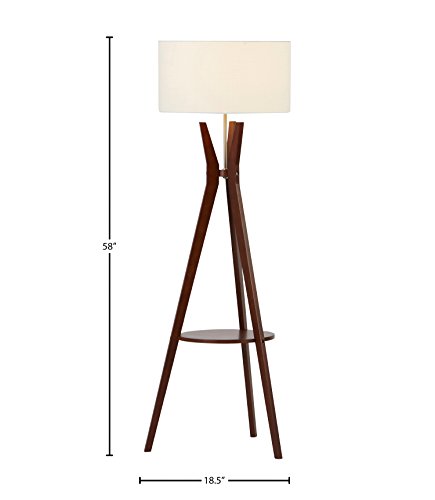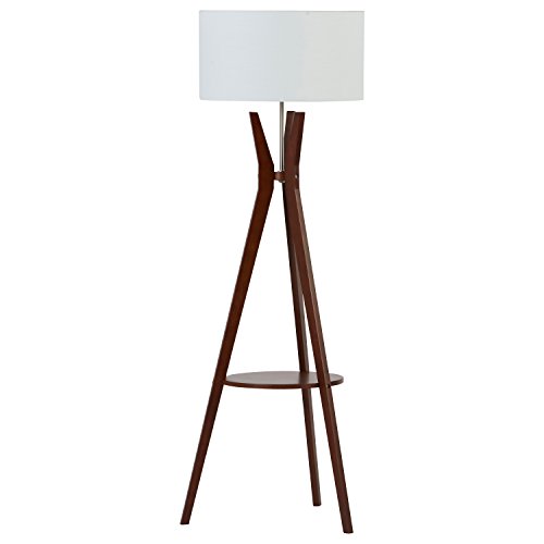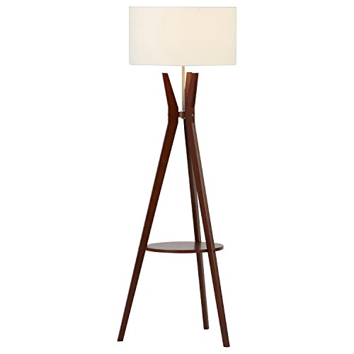 An Amazon brand - This mid-century modern floor lamp brings style, warmth and functionality to any room. Rich walnut legs form a tripod base with a round storage shelf in the middle. The brushed sliver neck merges with a crisp white linen shade.Feature