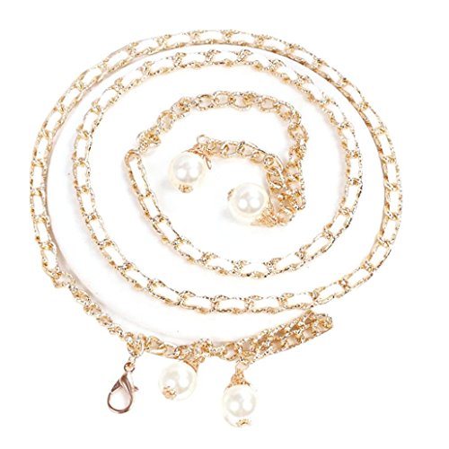 (AMA(TM))/Accessories/Belts Buckles/DIRECT FROM USA/AMA(TM) Women Ladies Pearl Metal Chain Wais t Dress Belt s trap Wais tband