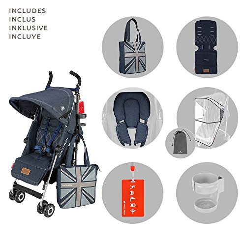 Includes: denim liner, magazine tote, cup holder, buggy ID tag and premium wind-resistant rain cover; Compatible with Maclaren Carrycot