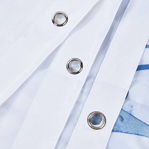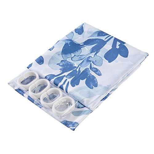 Mirage Teal Floral Flowers Fabric Shower Curtain with 12 Hooks, 72 x 72 Inch-Teal Blue (Pattern#7)