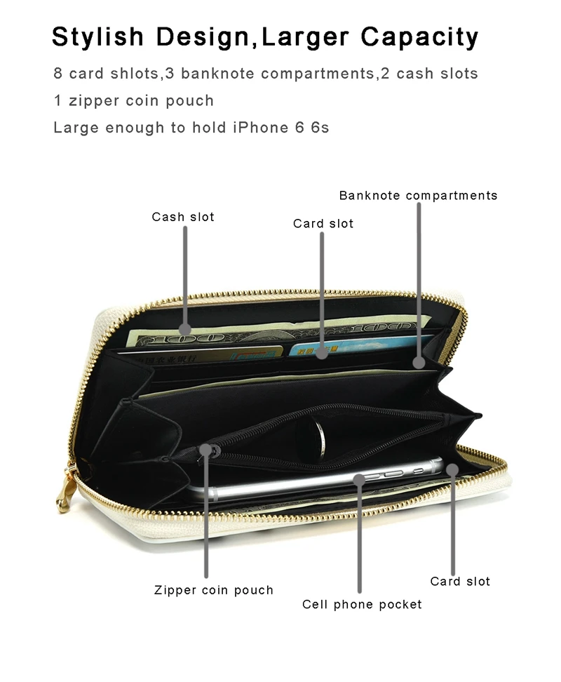Interior:Interior Compartment,Zipper Poucht,Cell Phone Pocket,Interior Zipper Pocket,Interior Slot Pocket,Coin Pocket,Card Holder,Note Compartment