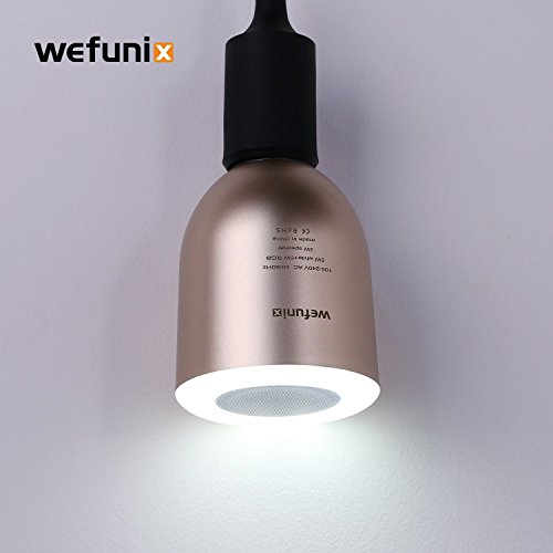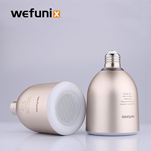 Bluetooth Smart Light Bulb Speaker, Color Changing RGB LED Light, Wireless Stereo Audio with Smartphone Control For Party Home Decoration, E26 E27 Based, Wefunix 06 Gold
