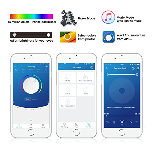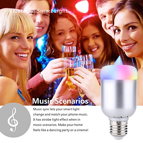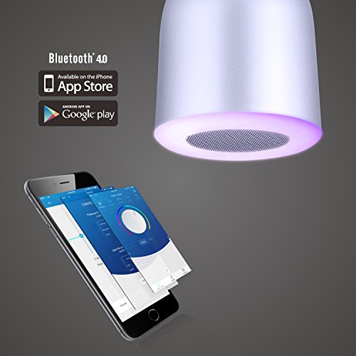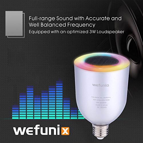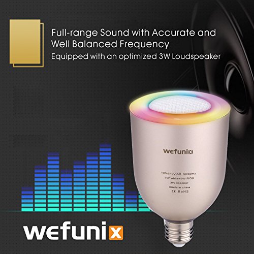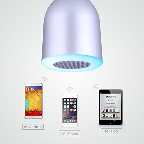 Bluetooth LED Smart Bulb Speaker, Wefunix APP Controlled Music Bulb For Party Time, Relaxtion, E26 E27 LED 5W White 5W RGB Speaker 3W Energy Saving, Stereo Speaker(Silver)