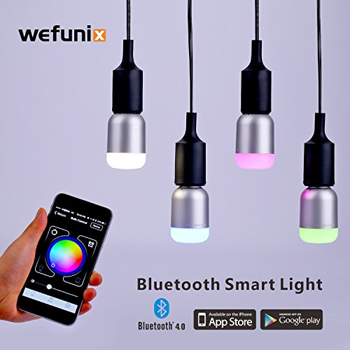 Bluetooth LED Bulb Smart Light Bulb,Dimmable Multicolored RGB Changing Lamp 6W E26 E27 Based App Control for Android and iOS [24 Month Warranty]-WeFunix 600