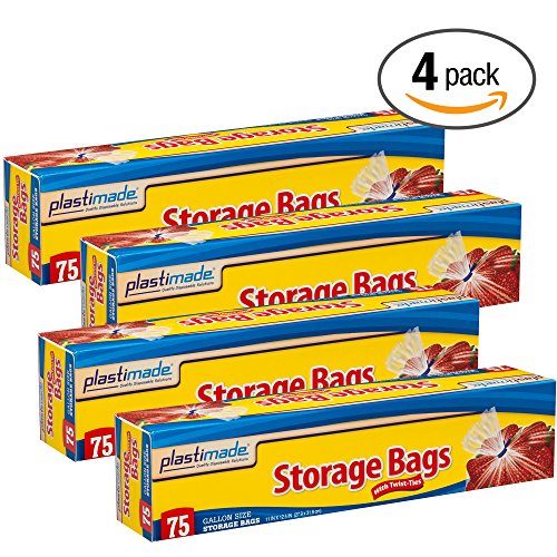 Plastimade Storage Bags, Original Twist-Tie, One Gallon, 75ct (Pack Of 4 300 Bags Total)