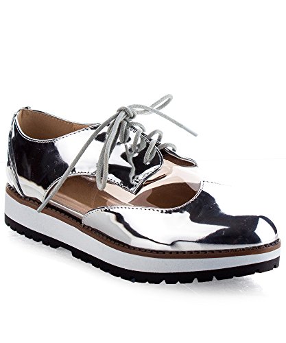 -. Title : Qupid Women's Fashion Metallic Saddle Shiny Lace Up Flatform Platform Oxford