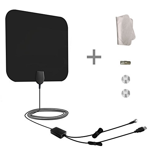Package include: 1* TV antenna 1* detachable amplifier 1* USB adapter 1* iec adapter 1* Microfiber cleaning cloth 4* 3m stickers