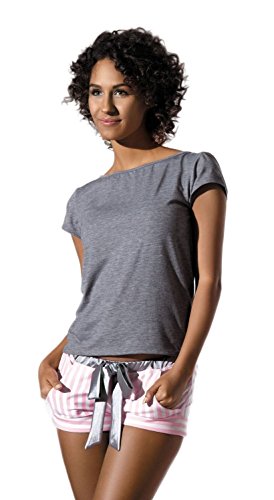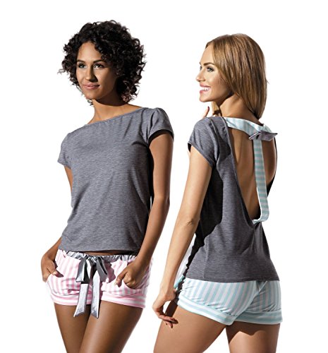 -. Binding : Textilien -. Brand : PIGEON Lingerie -. Department : Damen -. Feature : Trendiges und elegantes Shorty-Set aus kuscheligem Viskose-Shirt und niedlichen Baumwoll-Shorts der Marke PIGEON Lingerie direkt vom EU-Hersteller. / Hochwertiges Markenprodukt in einer tollen Geschenkbox originalverpackt. / Bestehend aus hübschem Sleepshirt mit dekorativem Ausschnitt und charmanter Schleife am Rücken und niedlichen Shorts im gestreiften Muster mit komfortablen, seitlichen Taschen und silberner Bundschleife an der Taille. / Sehr hochwertige und kuschelig weiche Qualität. Shirt in Grundfarbe Graphit mit kontrastreichen Streifen in rosa/weiß bzw. blau/weiß auf der Rückseite und Shorts niedlich gestreift ebenfalls in rosa/weiß bzw. blau/weiß. / Sehr elegant, weich und angenehm zu tragen. -. ProductGroup : Apparel -. ProductTypeName : SLEEPWEAR -. Title : PIGEON Lingerie trendiges Shorty-Set aus kuscheligem Viskose-Shirt und gestreiften Baumwoll-Shorts in toller Geschenkbox