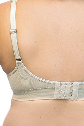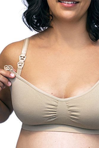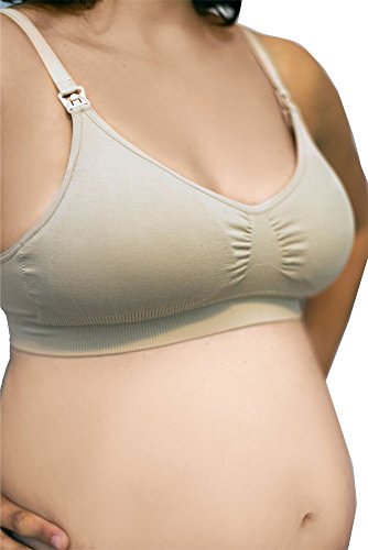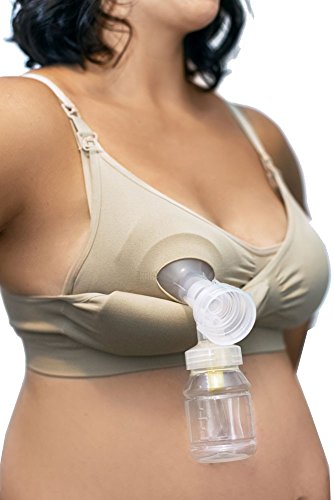 An innovative dual-panel design allows mothers to keep the garment in place whether breastfeeding, pumping or reveling in the moments between. The inside panel features a unique slit that holds a breast shield in place for hands-free convenience while pumping. Features: Seamless stretch fit, accommodating the ongoing changing fullness of your breasts. Each cup has two panels held up with snaps that allow mothers to keep the garment in place while breastfeeding, pumping and everything in between. The inside panel features a horizontal opening that fits to and holds a breast shield in place for hands-free convenience while pumping. Fits most pumps! Undo both snaps and pull down both panels to expose more of the breast and nurse your baby with ease. V-neck scoop and center ruching design maintains a feminine shape - no sports bra "uni-boob" here! Plush-lined adjustable straps and a ribbed band to provide flexible support. Comes with removable pads between the cup panels that offer extra support, comfort and shape.Feature