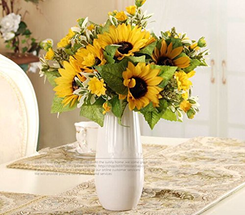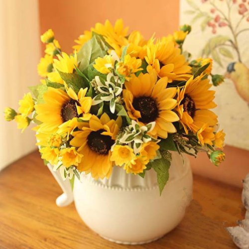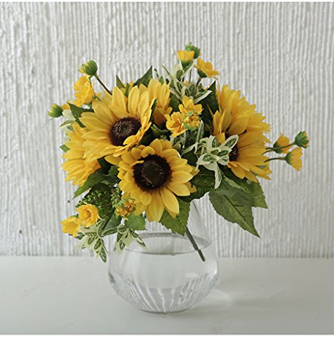 Meiliy 1 Bouquet Artificial Silk Sunflower 7-stems Flowers For Home Decoration Wedding Decor, Bride Holding Flowers Floral Decors