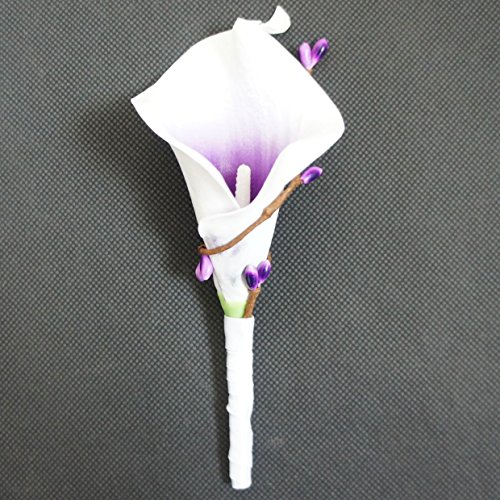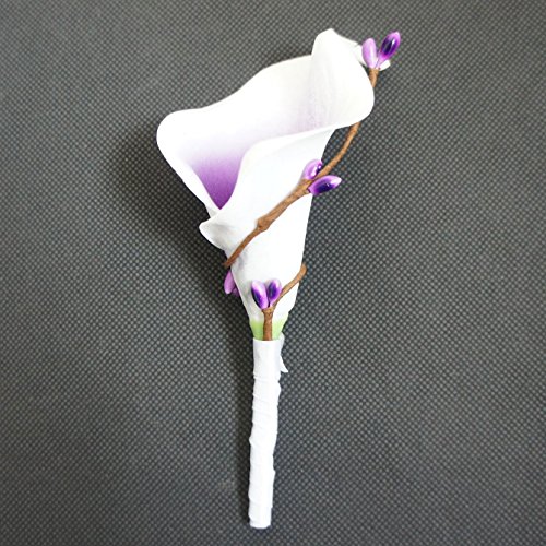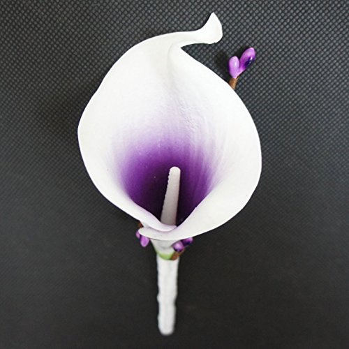 Lily Garden Artificial Flower Calla Lily Boutonniere Corsage with Ribbon (Purple Center)