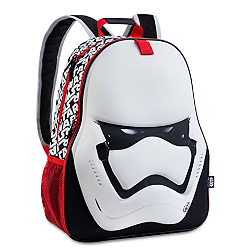 -. Brand : Disney Store Star Wars -. Color : White -. Department : unisex-child -. EAN : 4272518273214 -. Feature : Molded Stormtrooper helmet shell with fabric covering / Padded back with embroidered ''Star Wars'', Double-pull zip top main compartment / Soft section features ''Star Wars'' print, Accessory loop with self-stick fabric fastener / Two mesh exterior side pockets, Interior ID label, Top Carry Handle / Front compartment features double-pull zip, mesh interior accessory pocket with self-stick fabric fastener, three pen holders and additional pocket -. Model : 5602944 -. MPN : LYSB0197H4XEK-TOYS -. PackageQuantity : 1 -. PartNumber : LYSB0197H4XEK-TOYS -. ProductGroup : Apparel -. ProductTypeName : LAGE -. Size : One Size -. Title : First Order Stormtrooper Backpack - Star Wars: The Force Awakens