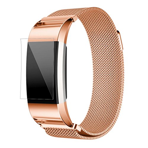 -. Title : Watch, TOPUNDER Milanese Stainless Steel Watch Band Strap Bracelet + HD Film For Fitbit Charge 2 RG