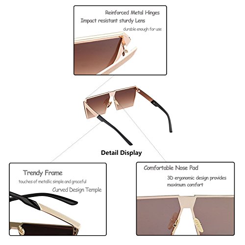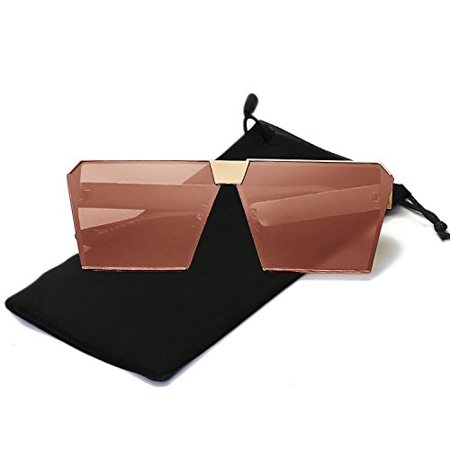 Mens Womens Oversized Square Sunglasses Metal Frame Flat Top Mirrored Sunglasses