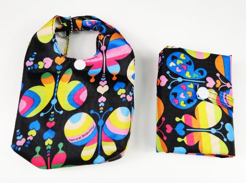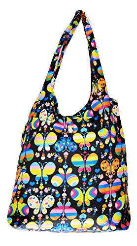 Trendy Sturdy Shopping Tote Bag - Rainbow Butterflies Pattern (Black)