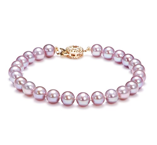 -. Title : Lavender 6-6.5mm AAAA Quality Freshwater 14K Yellow Gold Pearl Bracelet