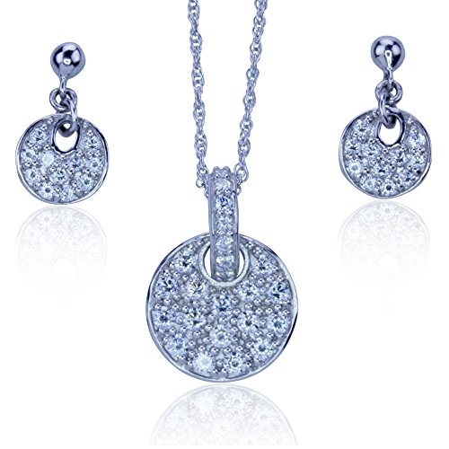 -. Title : Circle Shape Pendant and Earrings Set with Simulated Diamonds in Sterling Silver with 18" Chain